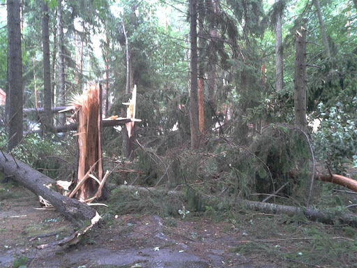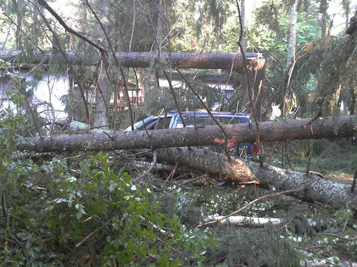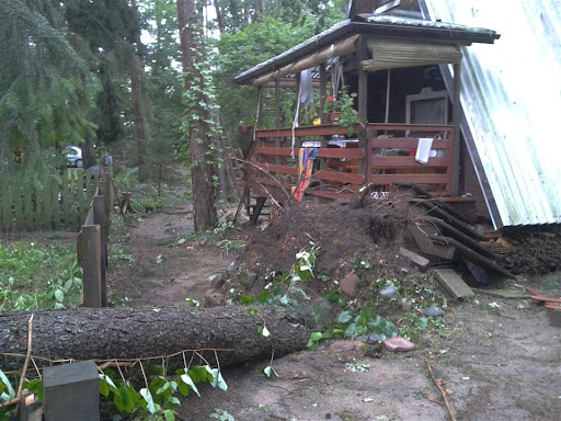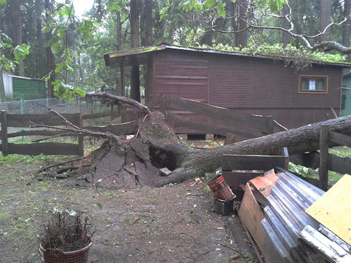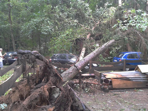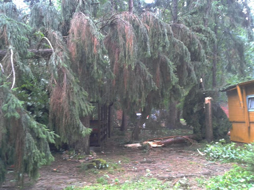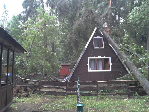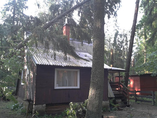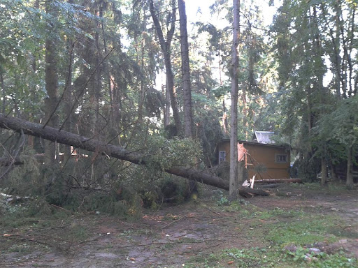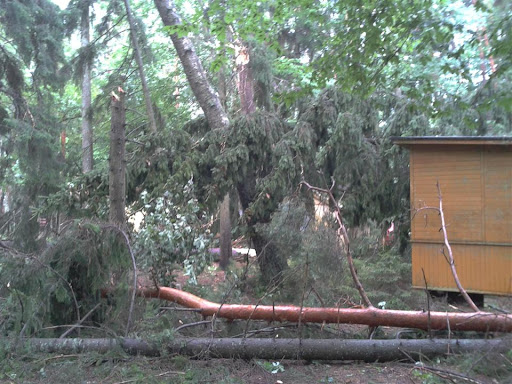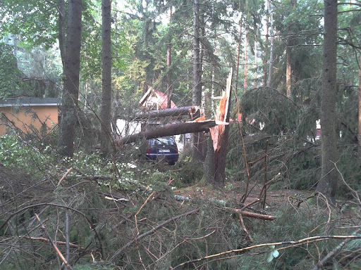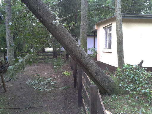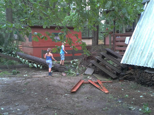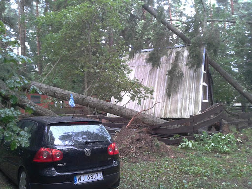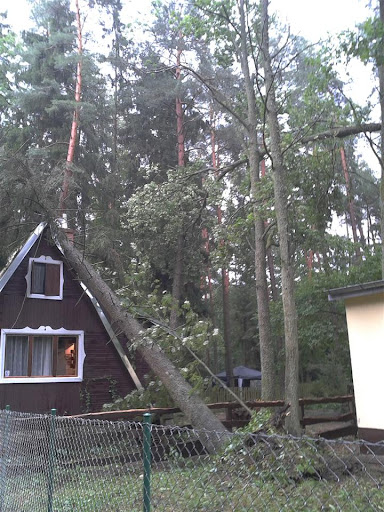 W poniedziałek 06 sierpnia około godz. 16:10 nad nasz Ośrodek nadciągnęła wichura. Silny porywisty wiatr siał spustoszenie w części położonej przy wjeździe do ośrodka. Wywracał drzewa z korzeniami, niektóre łamał jak zapałki przygniatając domki i samochody. Na domiar tego padał grad wielkości orzecha laskowego. Słowa i poniższe zdjęcia nie oddadzą tego, co działo się przez niespełna 10 min.